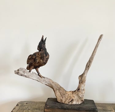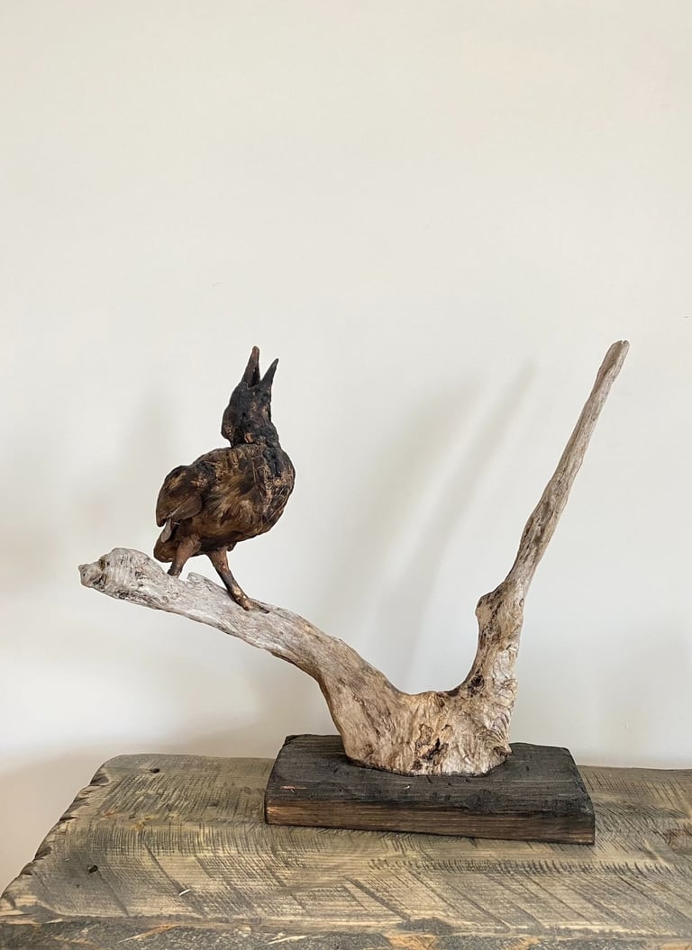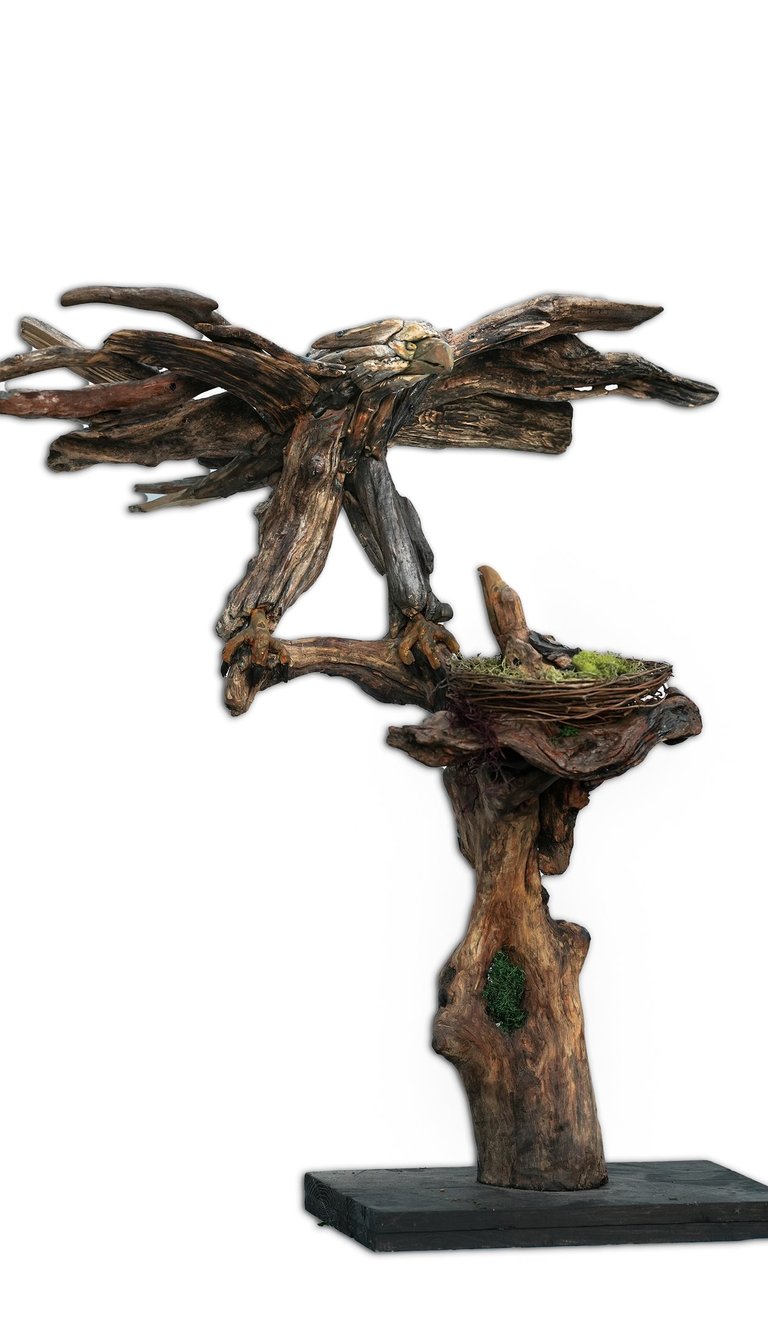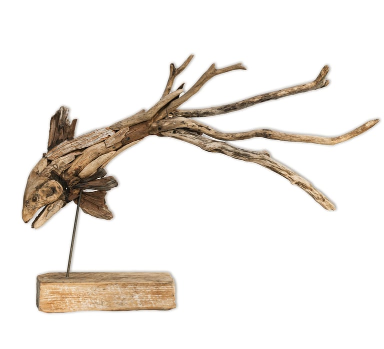 A raven sculpted from driftwood, merging nature’s raw elements with spiritual symbolism. The piece embodies transformation, resilience, and the mystical presence of the crow.