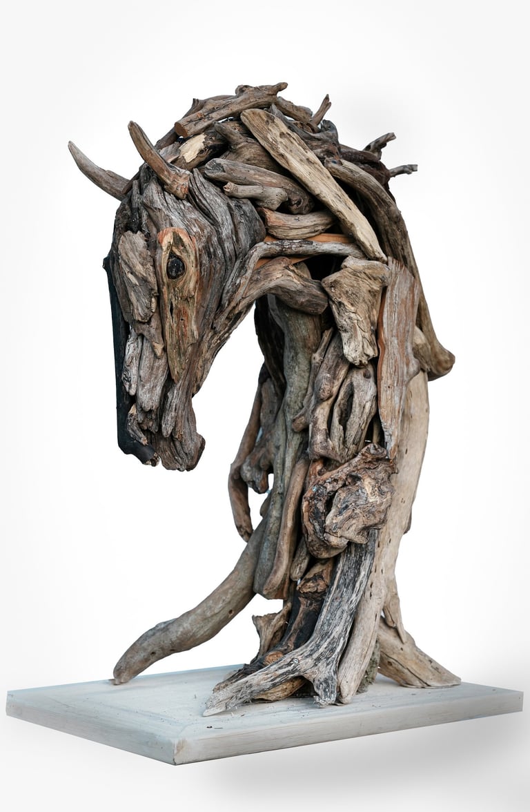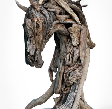 My artwork is a driftwood horse bust created using natural materials. By preserving the natural texture of the wood, I aimed to achieve an organic and aesthetic appearance. The piece is designed to withstand outdoor conditions entirely and is durable for long-term use in exterior environments.